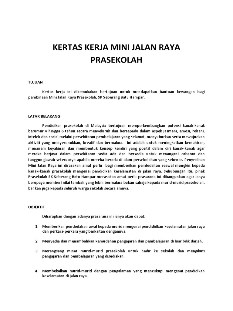 Kajian mengenai kemalangan jalan raya dikatakan mempunyai tahap kepenggunaan yang rendah bagi seorang guru. KERTAS CADANGAN PENAMBAHBAIKAN JALAN RAYA LALUAN PERGI DAN BALIK SEKOLAH SMK SERI KOTA PUTERI 2. Laluan Pendidikan Keselamatan Jalan Raya.